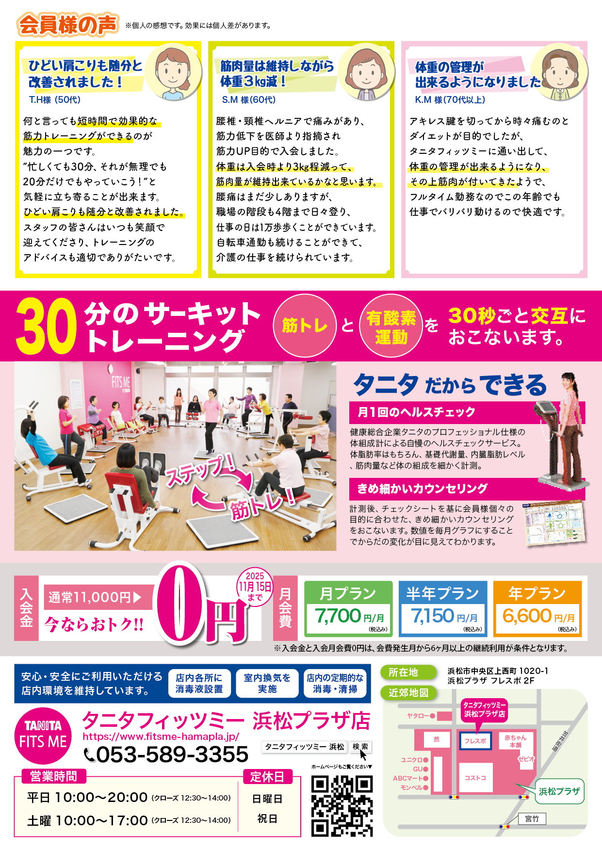 | 所在地 | 〒435-0048 静岡県浜松市中央区上西町1020-1 浜松プラザ フレスポ2F |